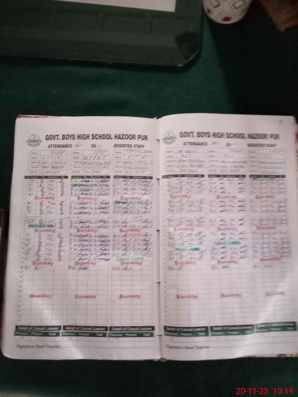 | CNIC | Full Name | Designation | R/C | Absence During Last Calender Month |