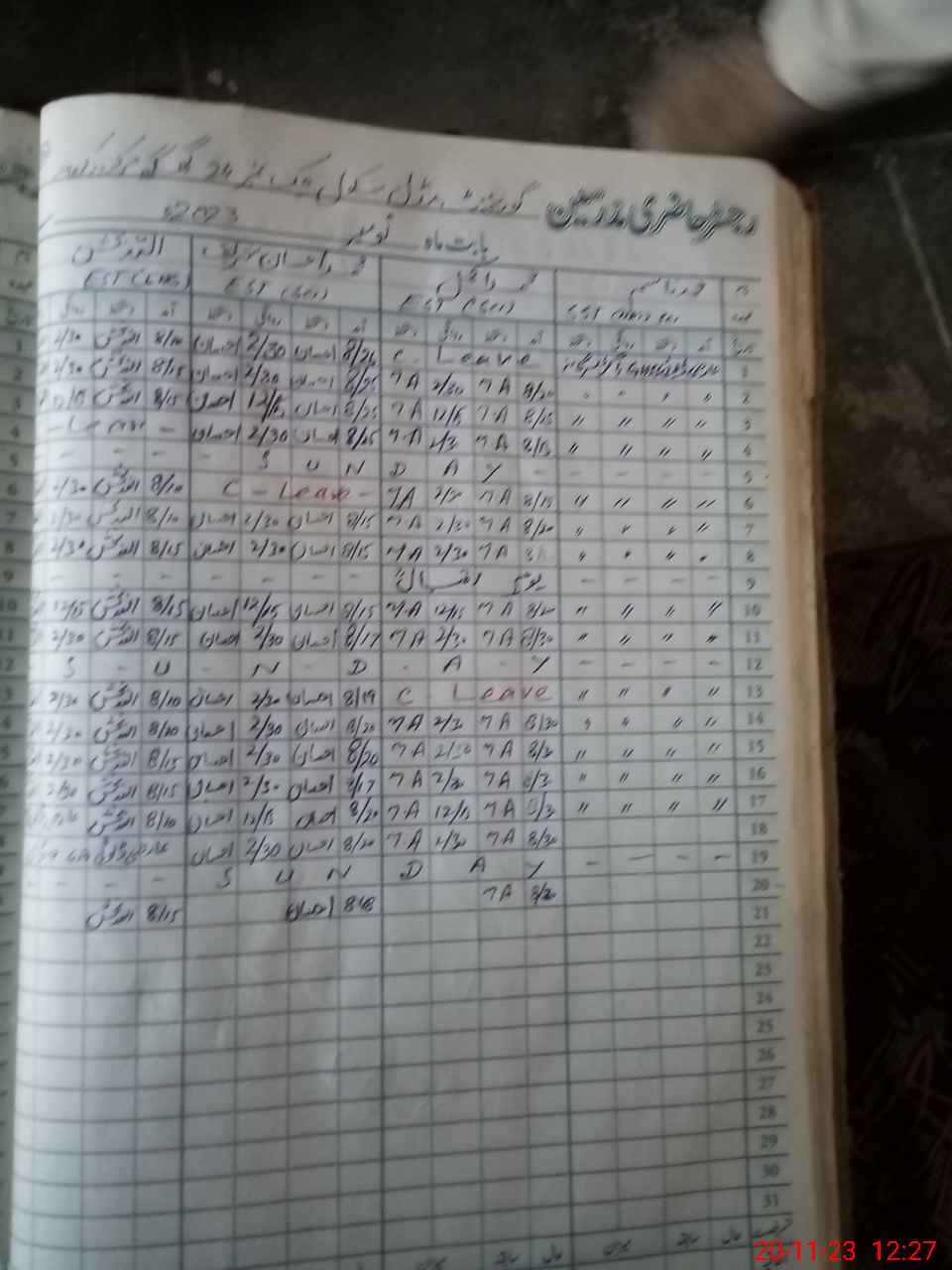 | CNIC | Full Name | Designation | R/C | Absence During Last Calender Month |