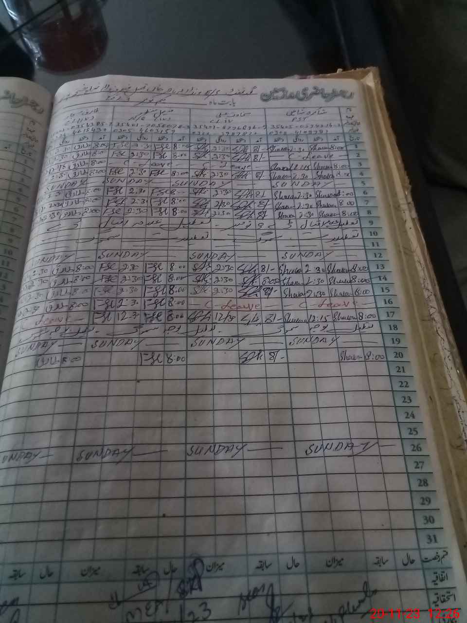 | CNIC | Full Name | Designation | R/C | Absence During Last Calender Month |