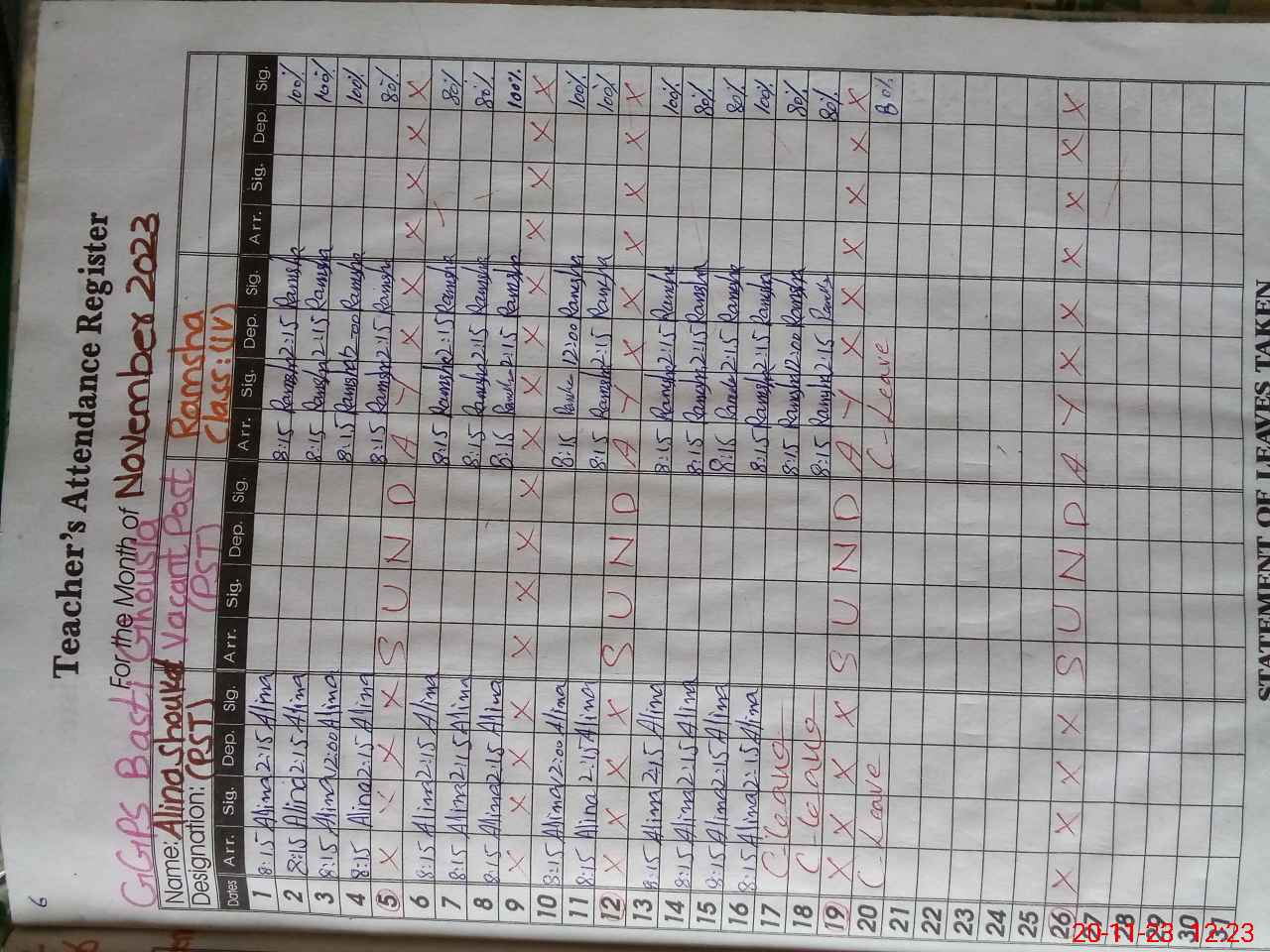 | 31**** | Ra**** No**** | NAIB QASID | Regular | 2 | 23 | 0 | 0 | 0 | 0 | 0 | 0 | 2 | Casual |