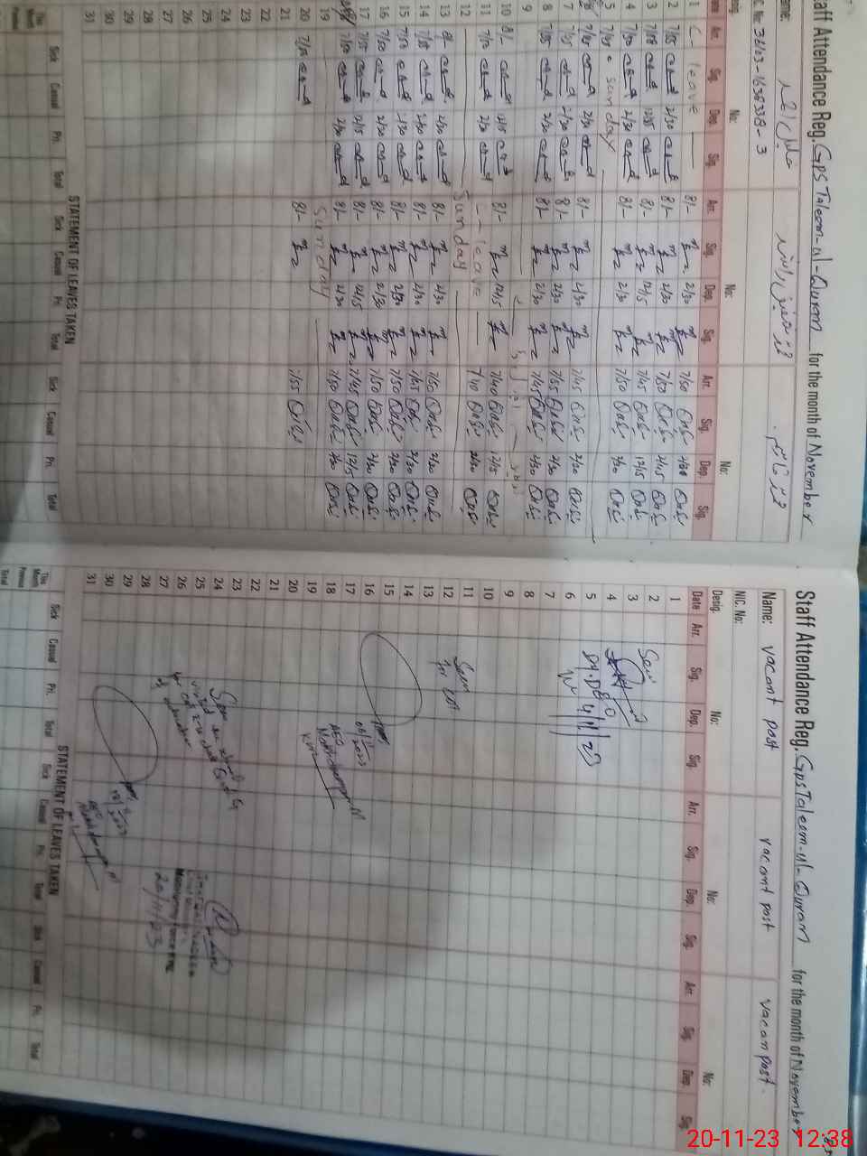 | CNIC | Full Name | Designation | R/C | Absence During Last Calender Month |