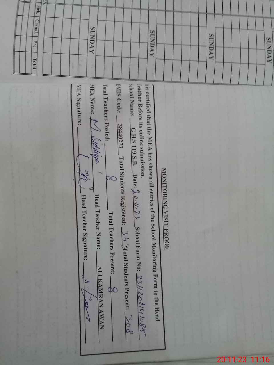 | EMIS Code: 38440273 | Name of School: GHS CHAK NO.119 SB | |||