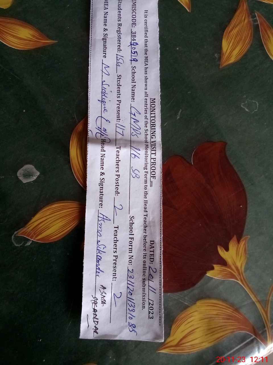 | EMIS Code: 38420519 | Name of School: GMPS CHAK NO.116 SB | |||