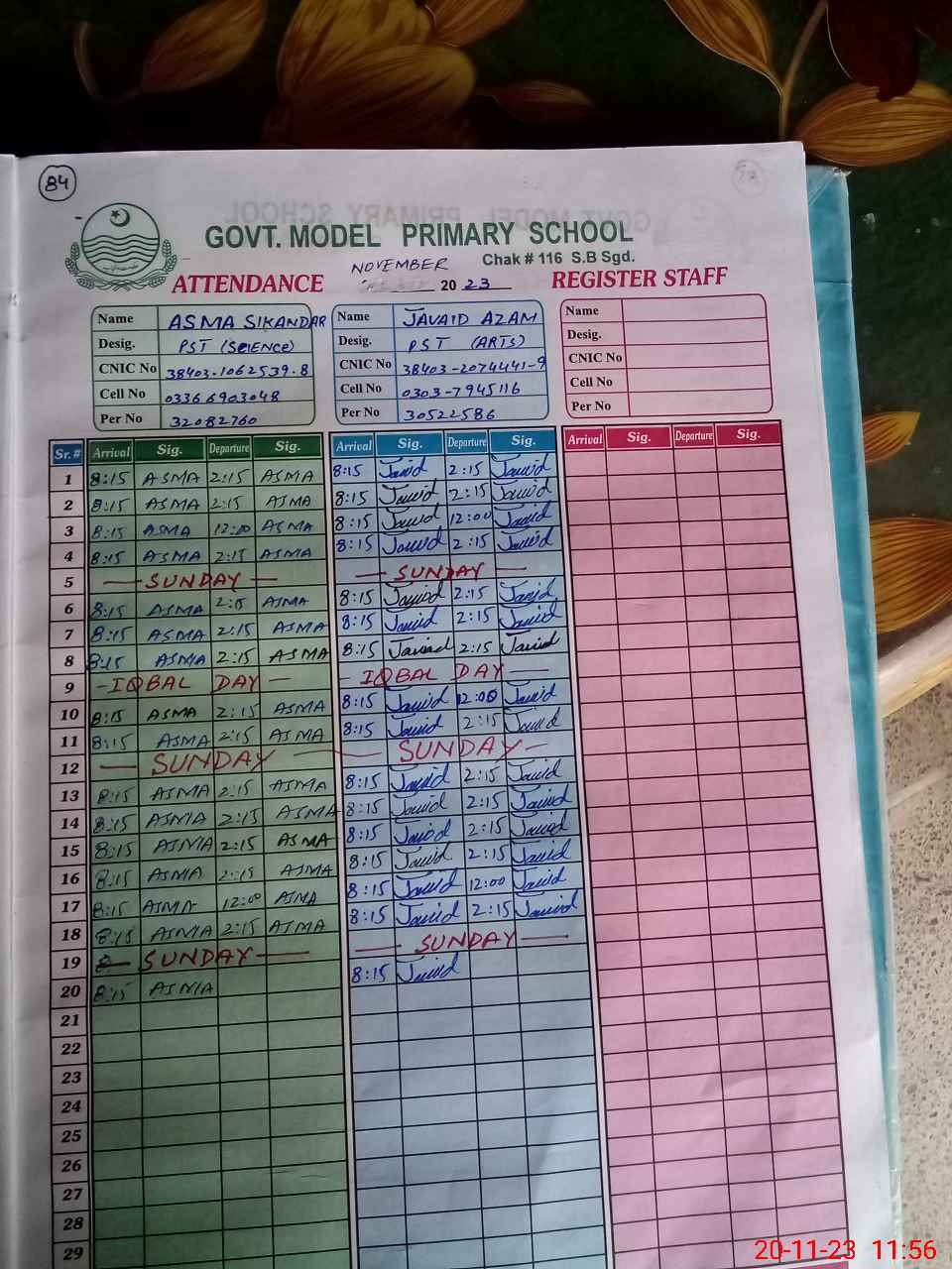 | Name: Ja**** Az**** Designation: (School Headmaster's/Headmistress's) PST (SCI ) Phone/Cell Number: 03**** |