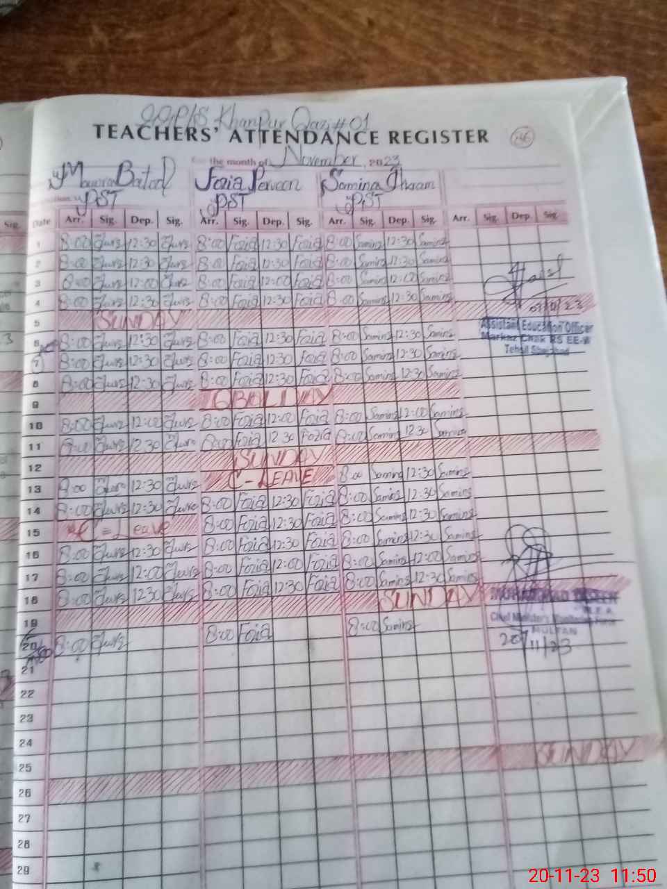 | CNIC | Full Name | Designation | R/C | Absence During Last Calender Month |