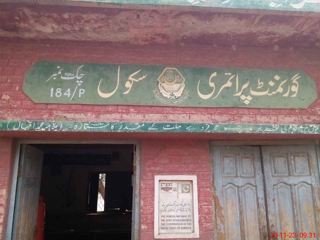 | EMIS Code: 31340161 | Name of School: GPS CHAK NO 184/P | |||