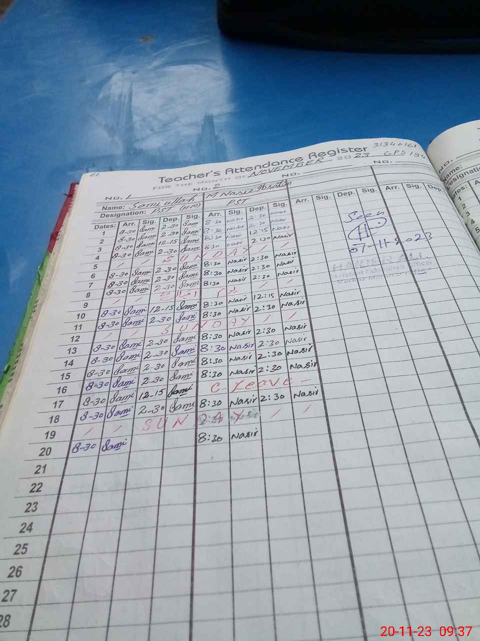 | CNIC | Full Name | Designation | R/C | Absence During Last Calender Month |