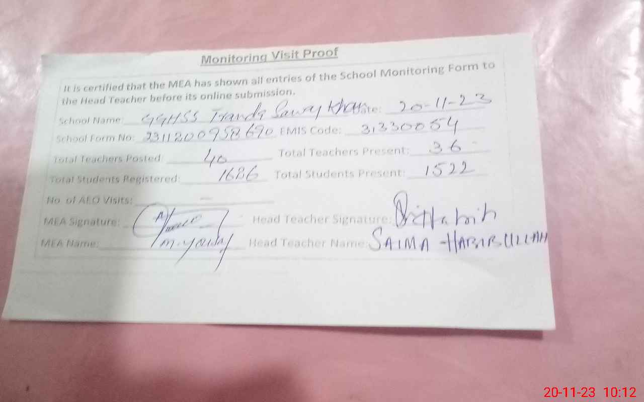 | EMIS Code: 31330054 | Name of School: GGHSS TRANDA SAWAY KHAN | |||