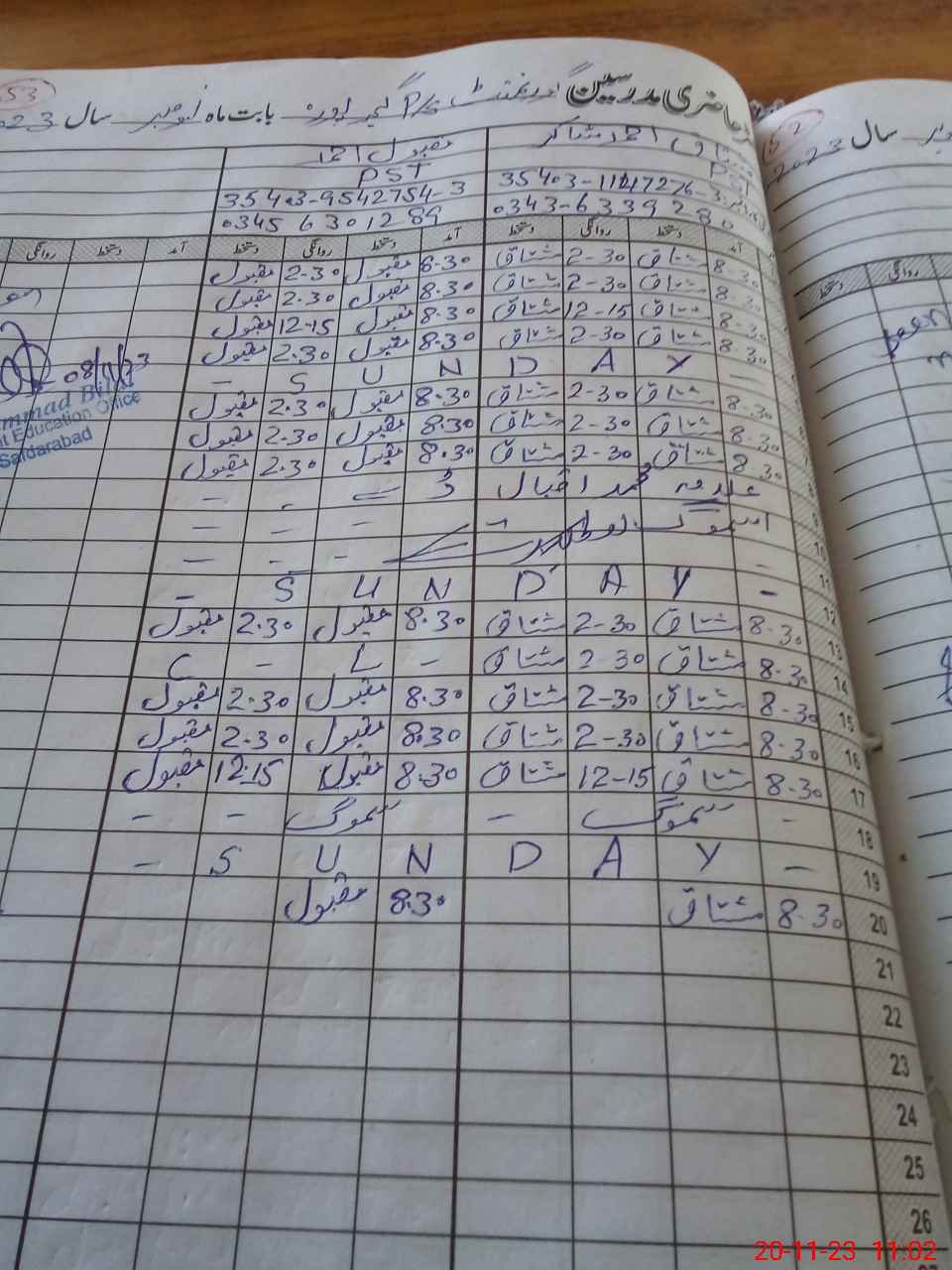 | District: SHEIKHUPURA | Tehsil: SAFDARABAD | Markaz: PHULARWAN-MALE | Level: Primary | |
