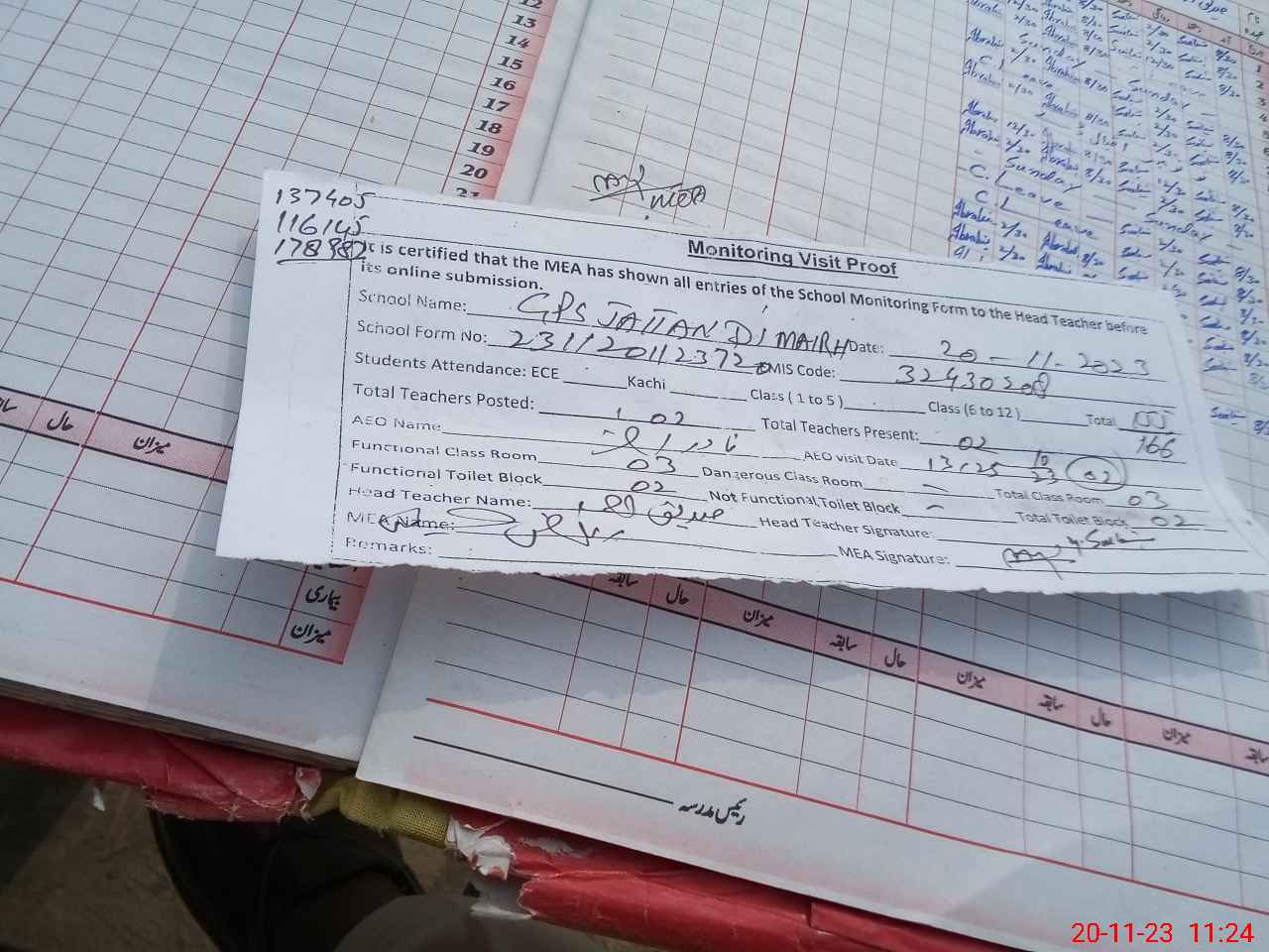 | EMIS Code: 32430208 | Name of School: GPS JATAN DI MAIRH | |||