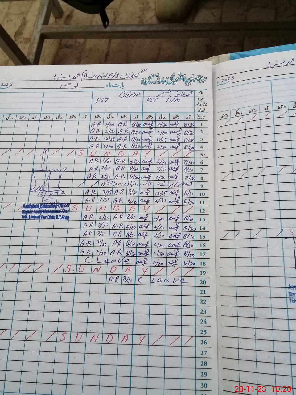 | CNIC | Full Name | Designation | R/C | Absence During Last Calender Month |
