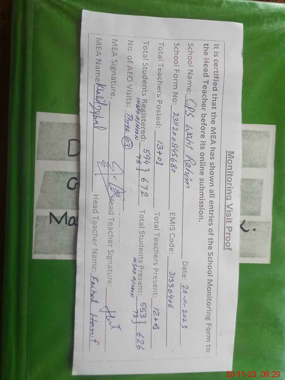 | EMIS Code: 31330406 | Name of School: GPS WAHI RAHIM | |||