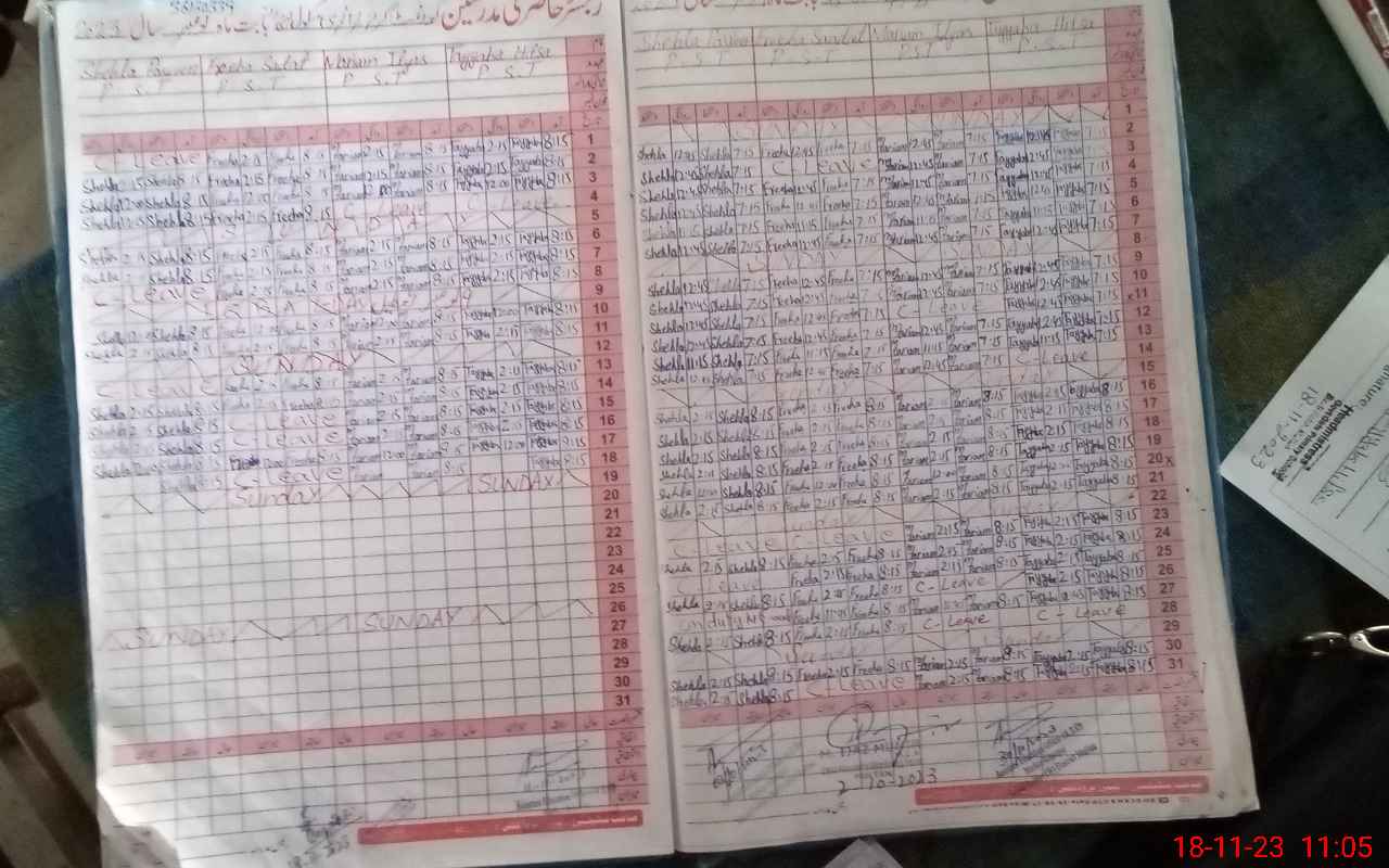 | CNIC | Full Name | Designation | R/C | Absence During Last Calender Month |