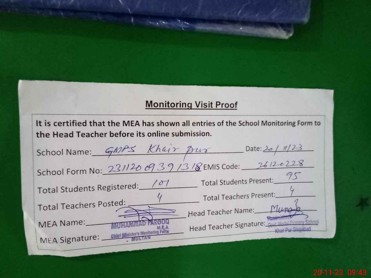 | EMIS Code: 36120228 | Name of School: GMPS KHAIR PUR SHUJABAD | |||
