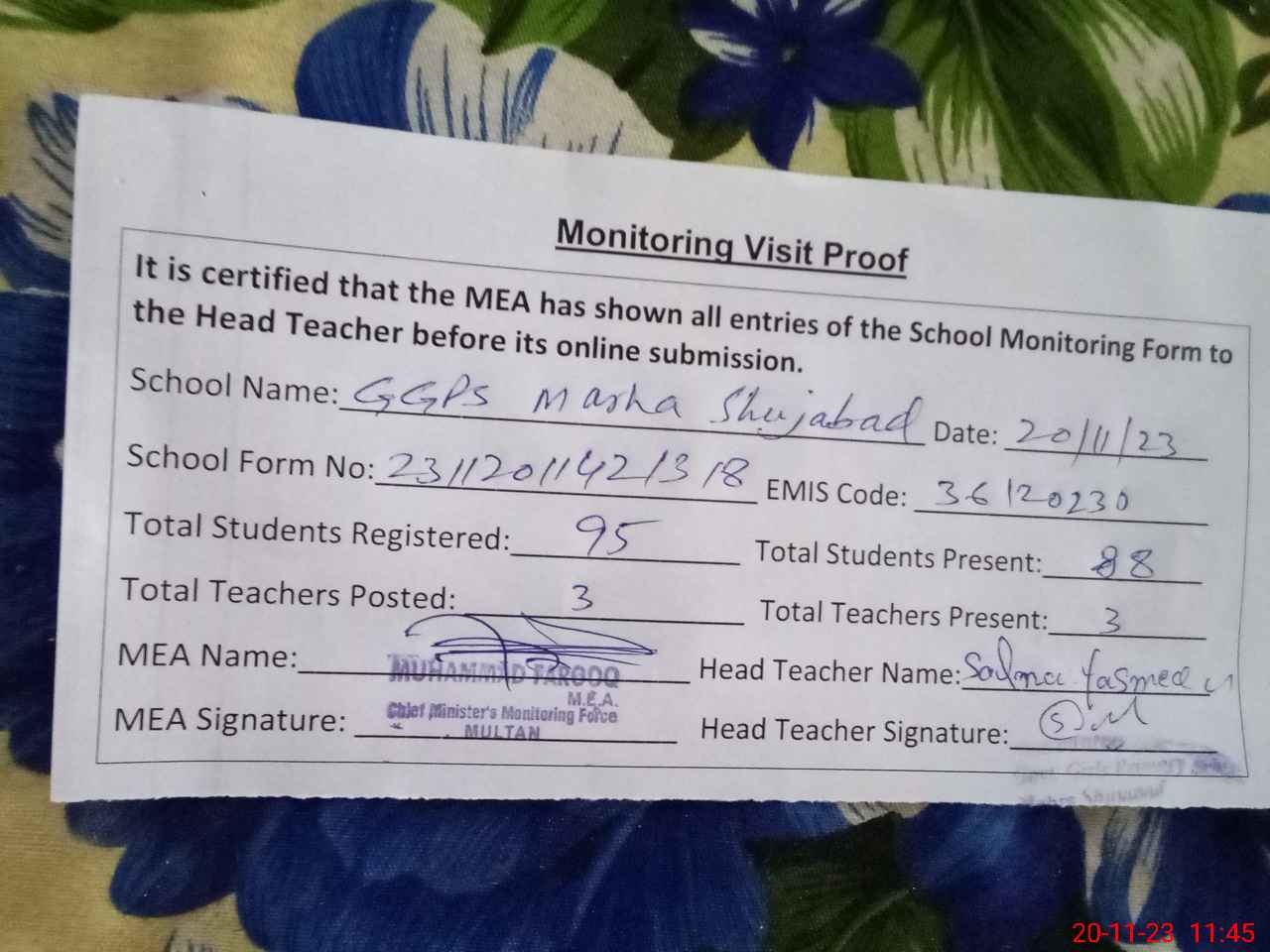 | EMIS Code: 36120230 | Name of School: GGPS MARAHA BASTI CHAH DARKHAN WALA SHUJABAD | |||
