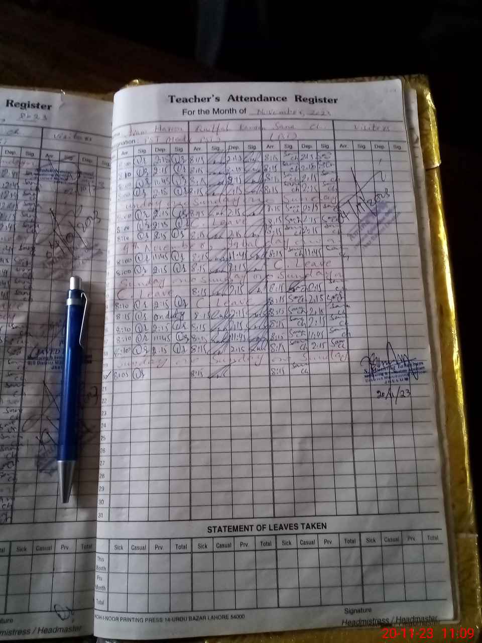 | CNIC | Full Name | Designation | R/C | Absence During Last Calender Month |
