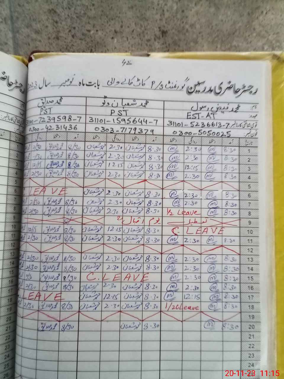 | CNIC | Full Name | Designation | R/C | Absence During Last Calender Month |