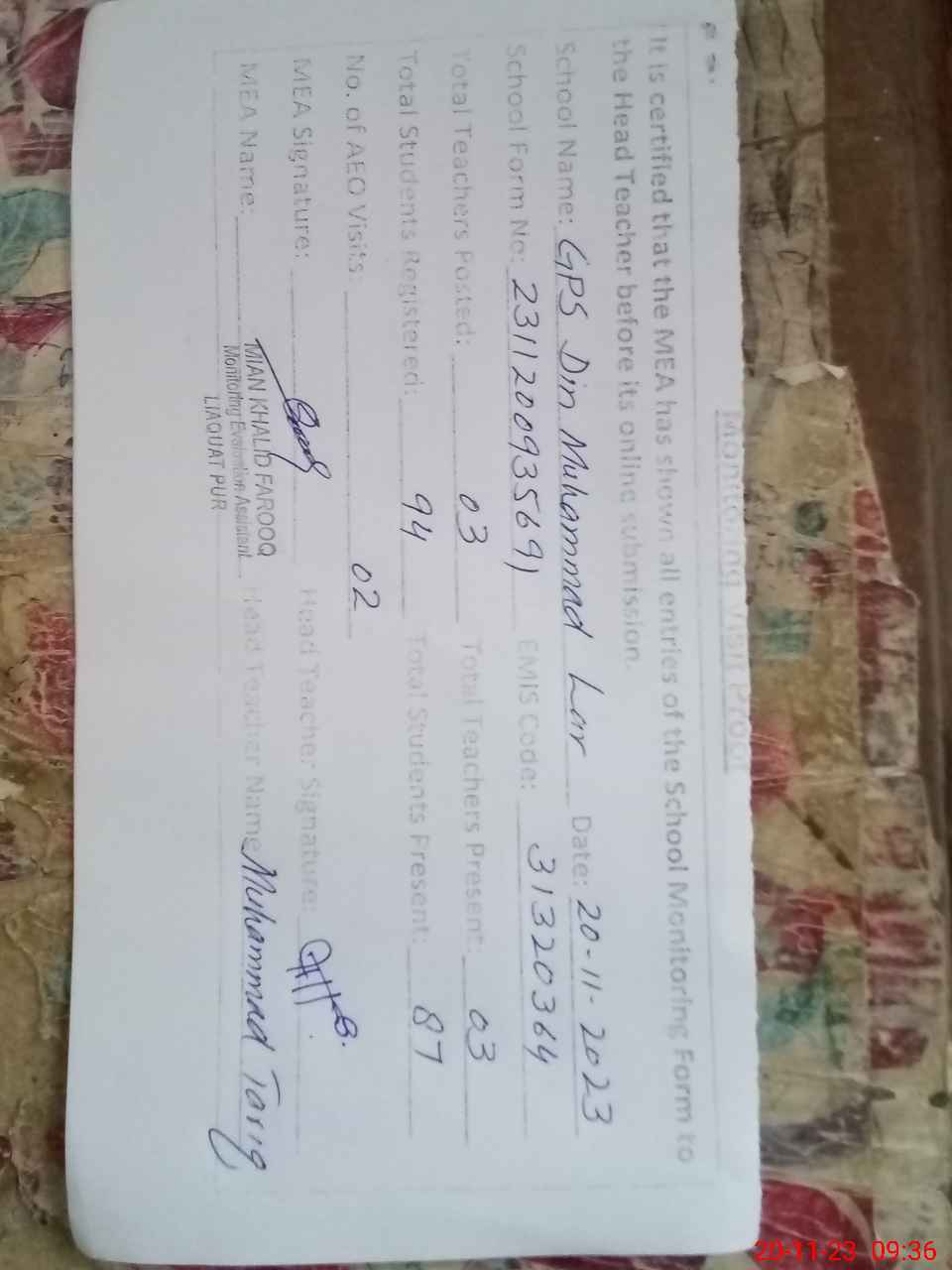 | EMIS Code: 31320364 | Name of School: GPS DIN MUHAMMAD LAR | |||