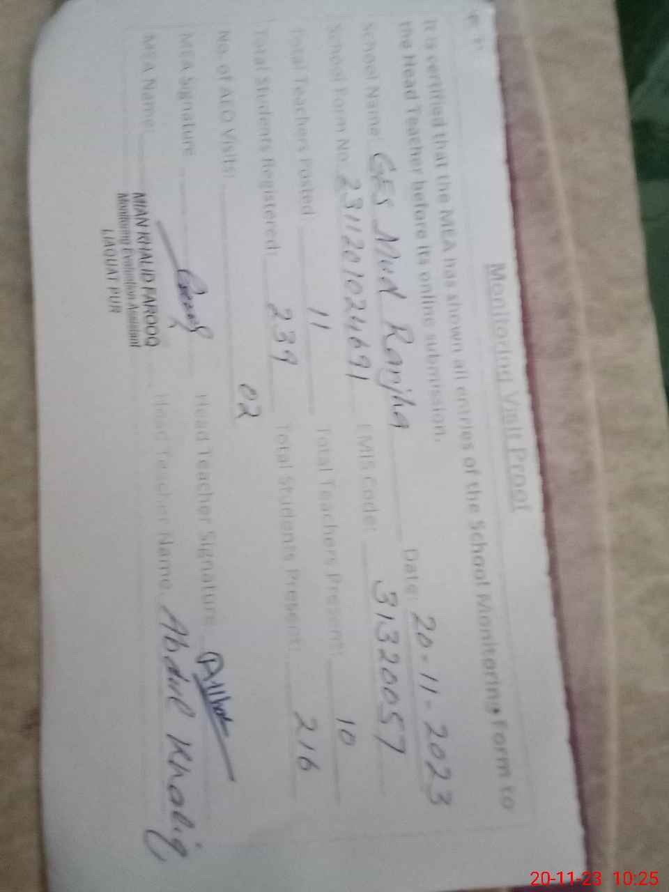 | EMIS Code: 31320057 | Name of School: GES RAFIQUE MUD RANJA | |||