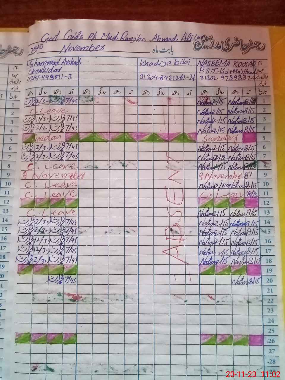 | 31**** | Kh**** BiBi | 1 | 0 | 0 | 31 | 0 | 0 | 0 | 0 | 0 | 0 | Absent (Un-Authorized) | |