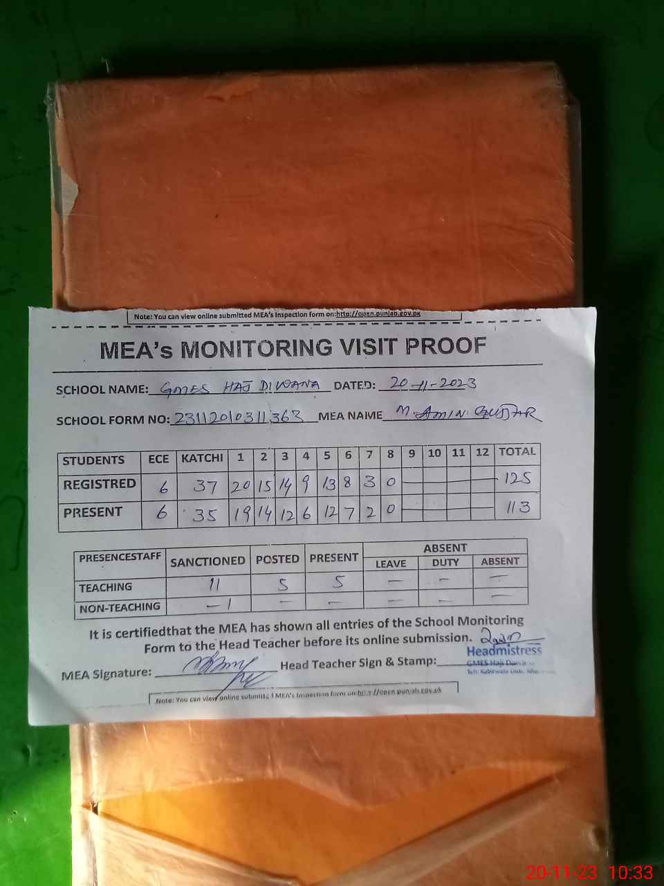 | EMIS Code: 36410425 | Name of School: GMES HAJI DIWANA, SARAI SIDHU | |||