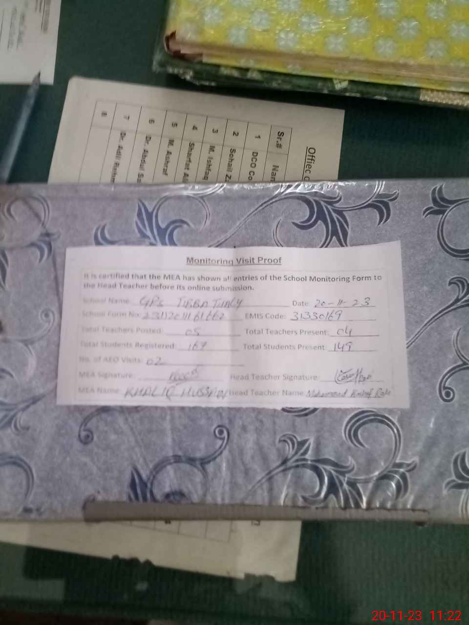 | EMIS Code: 31330169 | Name of School: GPS TIBBA THALLY | |||