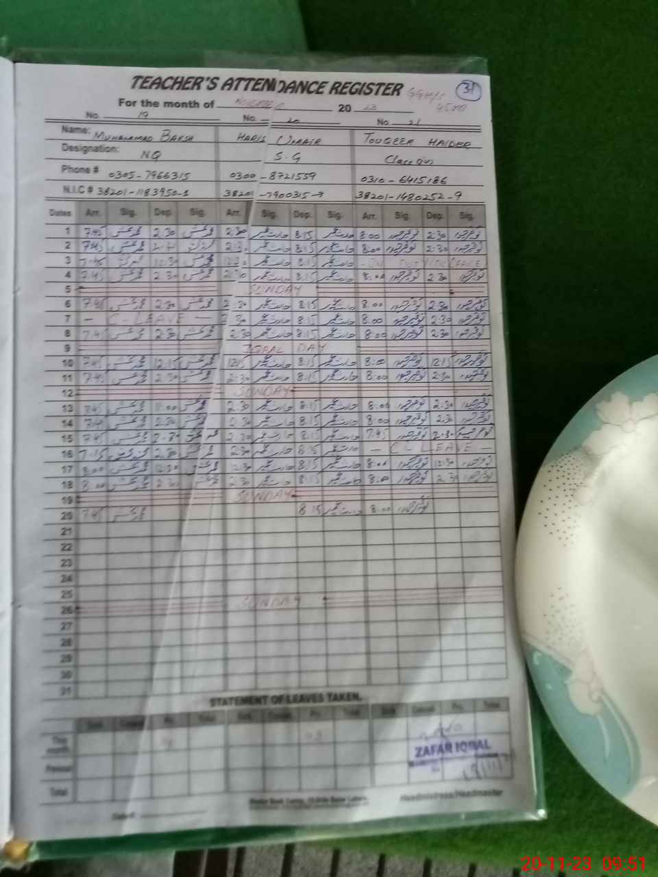 | Name: Hi**** Bi**** Designation: (School Headmaster's/Headmistress's) Headmaster Phone/Cell Number: 03**** |