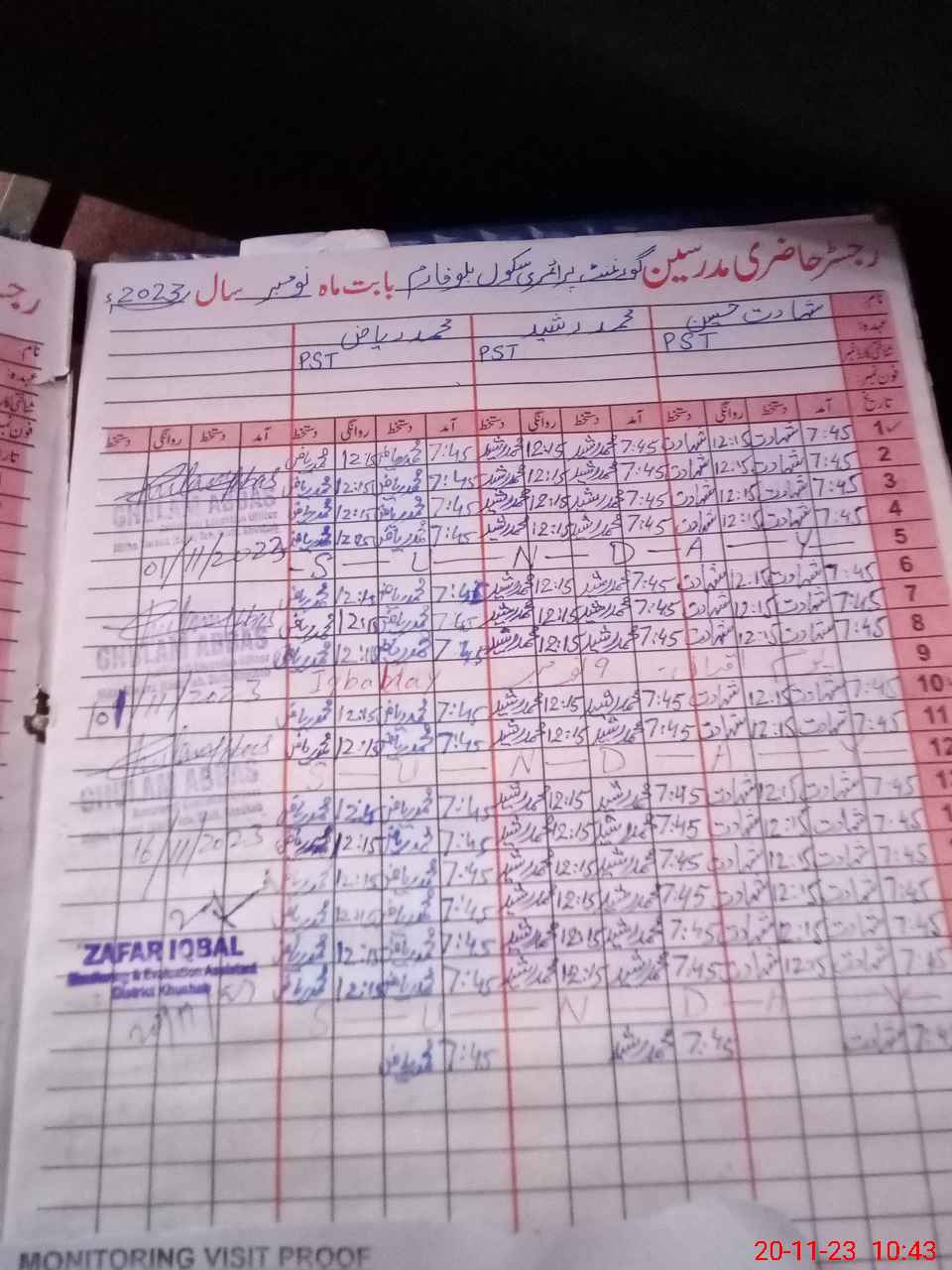 | Monitoring Date: 20-11-2023 | Start Time: 20-11-2023 10:30 AM | End Time: 20-11-2023 10:44 AM | Name of MEA: ZA**** IQ**** | |