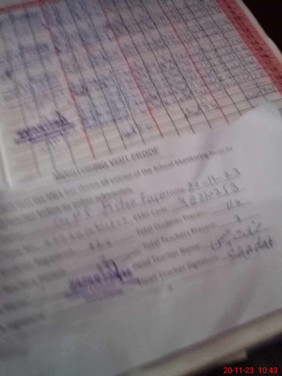 | Attendance Register | Head Teacher | MEA with School | Visit Proof |