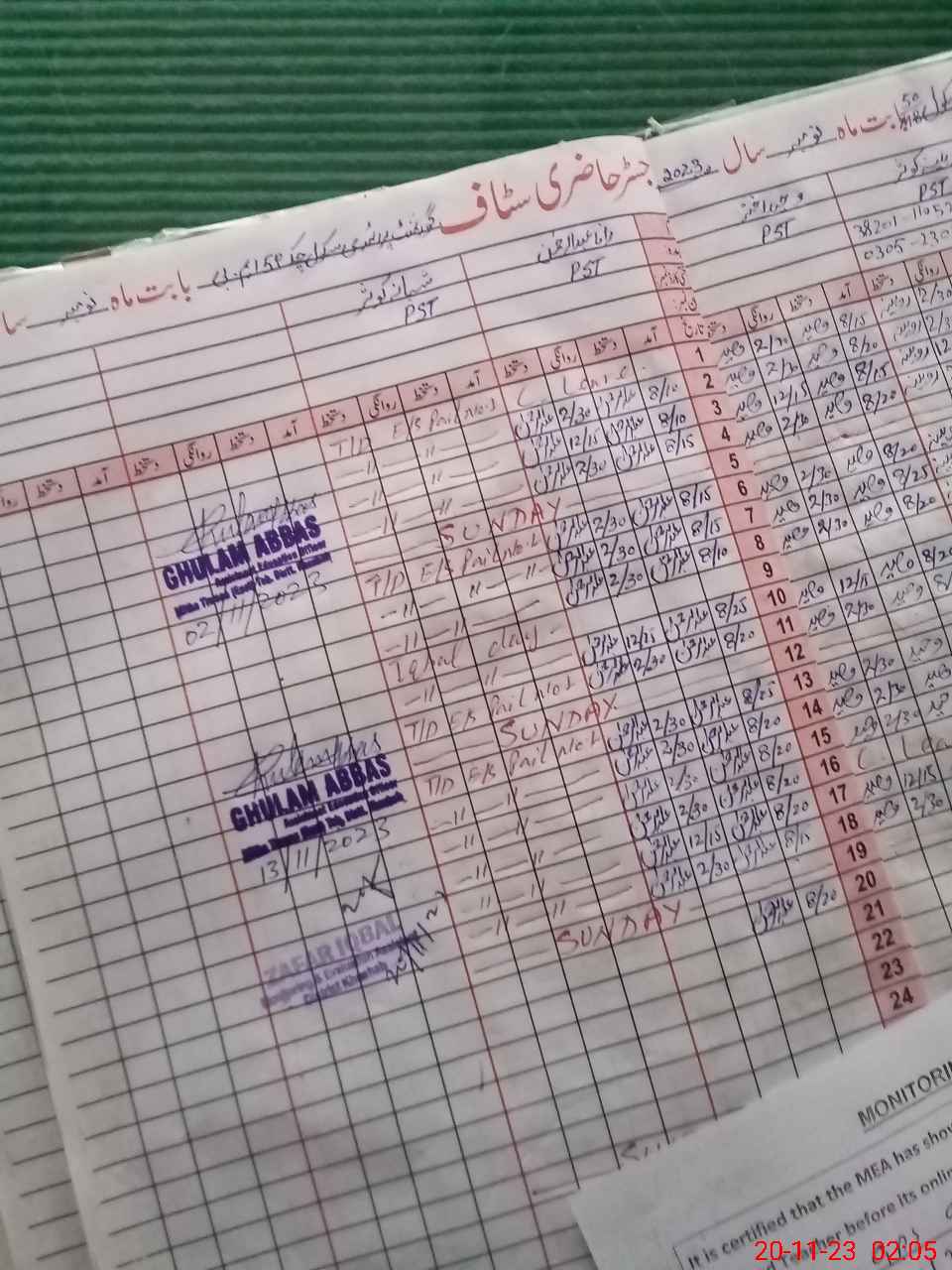 | Monitoring Date: 20-11-2023 | Start Time: 20-11-2023 01:38 AM | End Time: 20-11-2023 02:05 AM | Name of MEA: ZA**** IQ**** | |