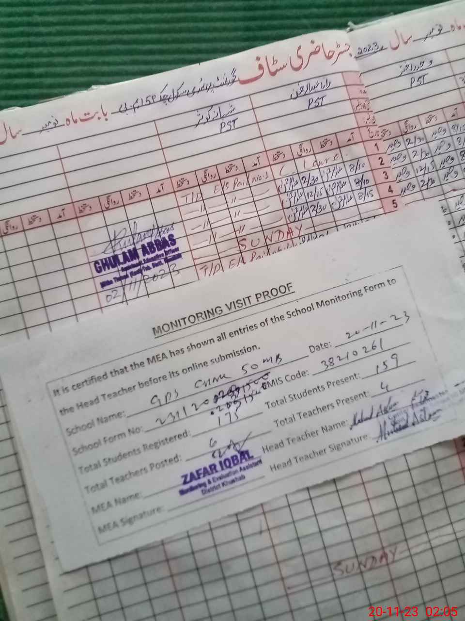 | EMIS Code: 38210261 | Name of School: GPS CHAK NO 50 MB | |||