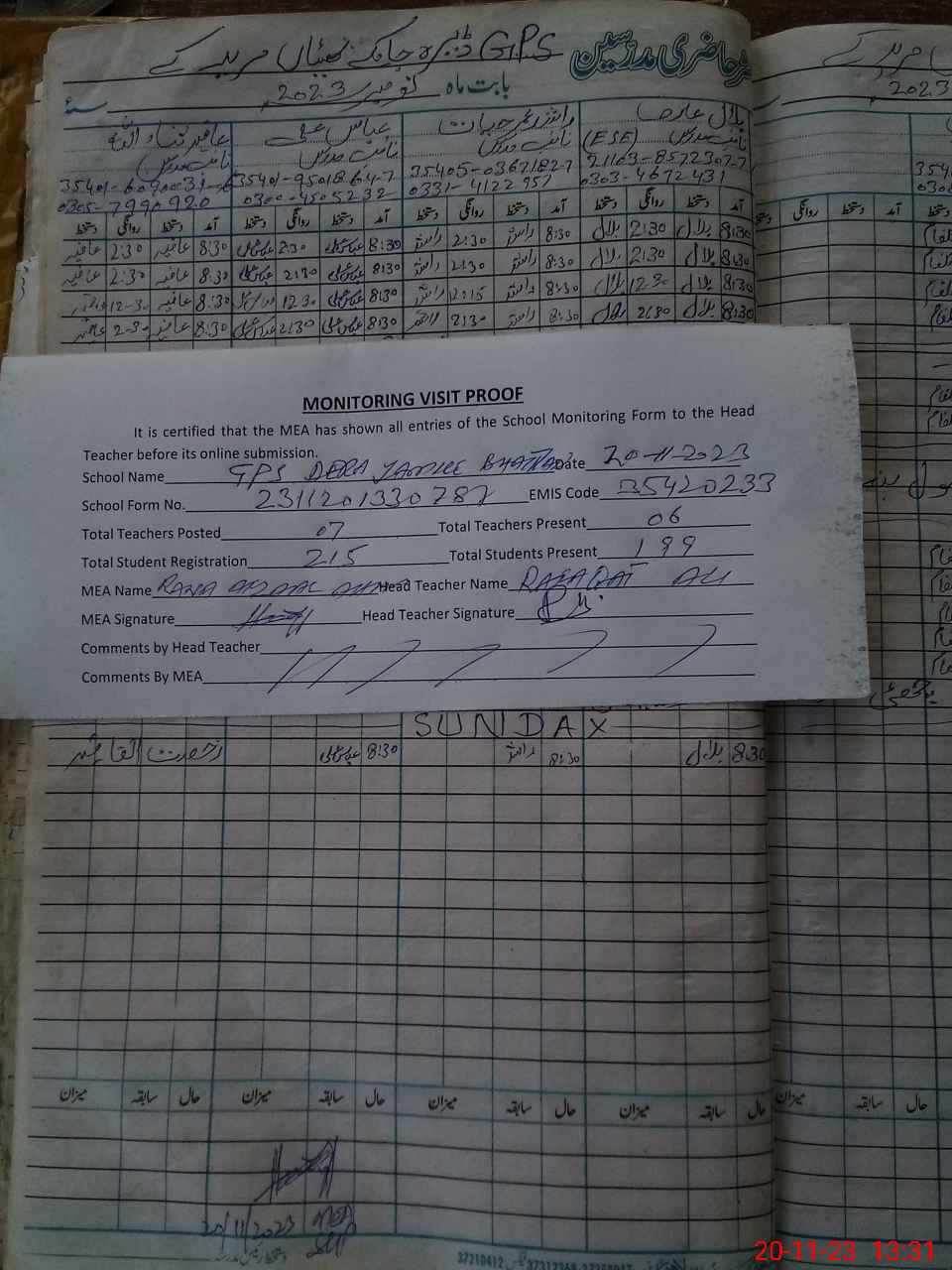 | EMIS Code: 35420233 | Name of School: GPS DERA JAMKE BHATTIAN | |||
