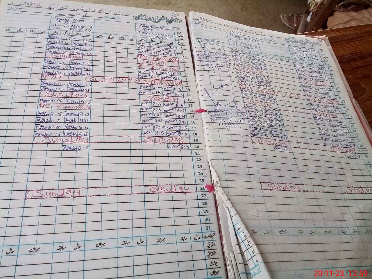 | CNIC | Full Name | Designation | R/C | Absence During Last Calender Month |