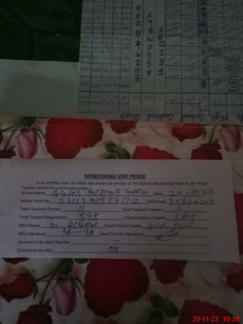 | EMIS Code: 35620202 | Name of School: GGHS GOBIND GARH | |||