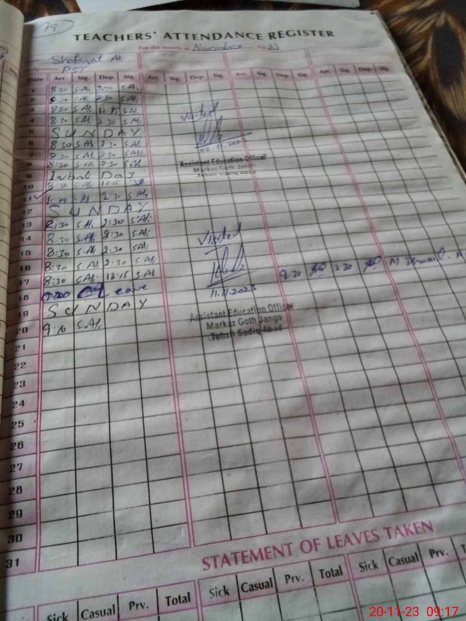 | 31**** | Mu**** Fa**** Kh**** | Contract | 0 | 0 | 31 | 0 | 0 | 0 | 0 | 0 | 0 | Absent (Un-Authorized) | |