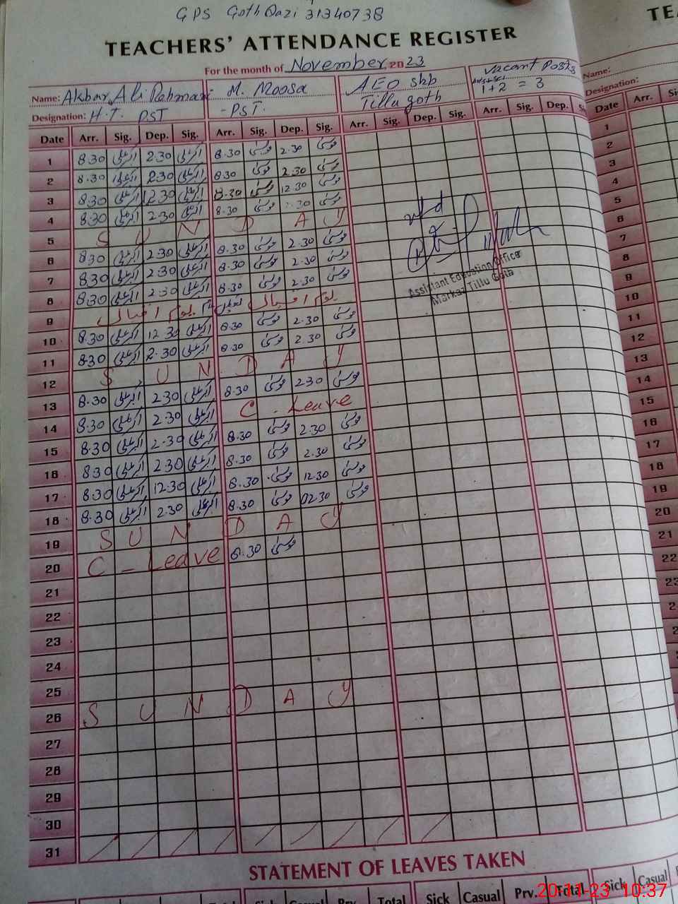 | Name: Mu**** Mu**** Designation: (School Headmaster's/Headmistress's) PST Phone/Cell Number: 03**** |