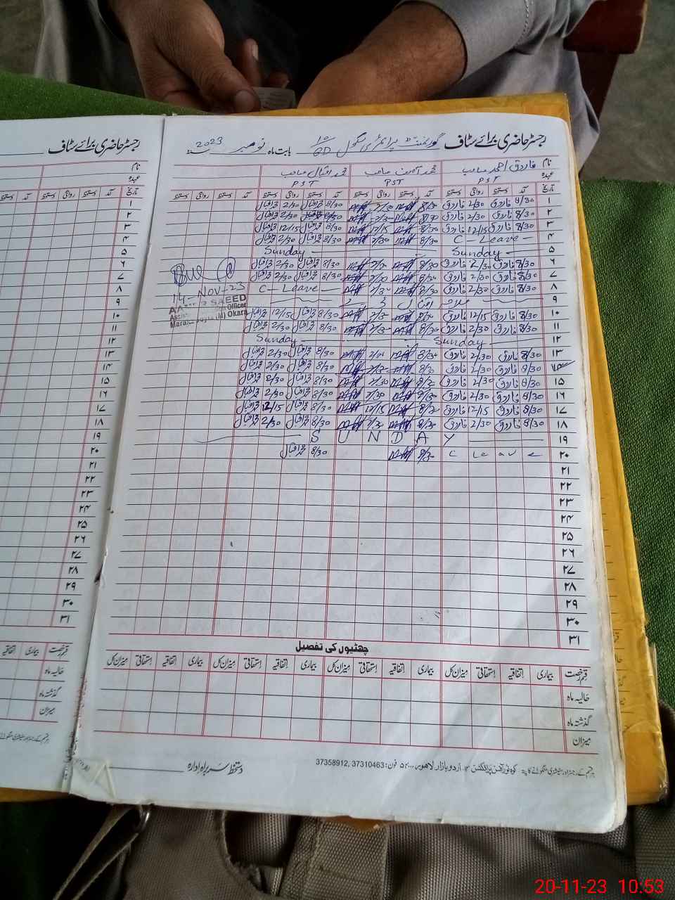 | CNIC | Full Name | Designation | R/C | Absence During Last Calender Month |