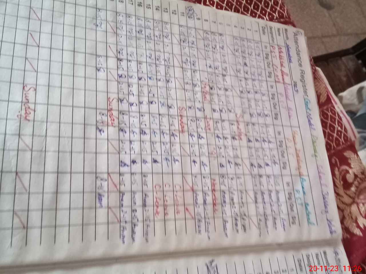 | No. of Students Present - Male | 23 | 0 | 20 | 20 | 10 | 15 | 7 | 12 | 107 | |||||||