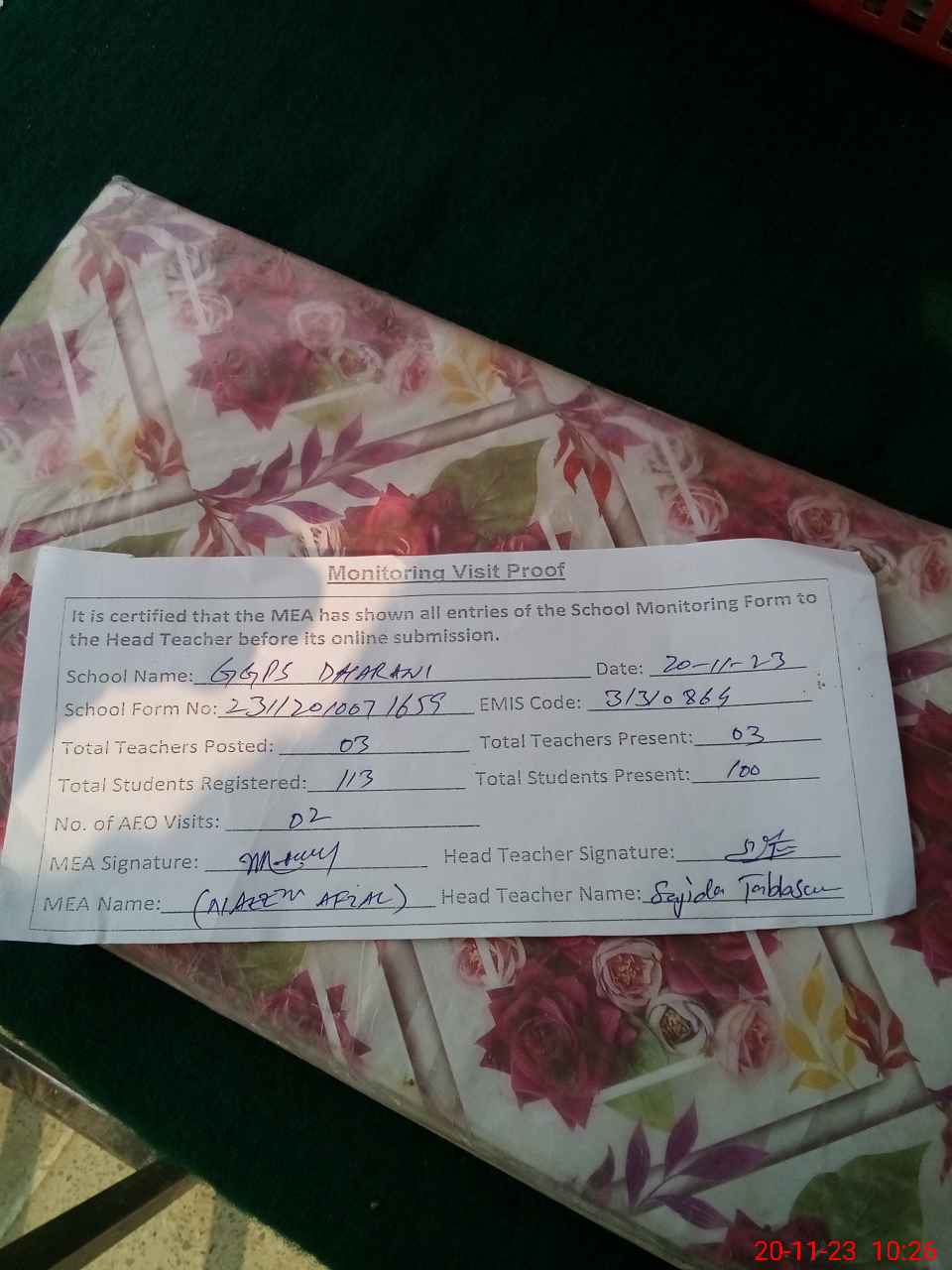 | EMIS Code: 31310864 | Name of School: GGPS BASTI DHARANI (After Noon) | |||