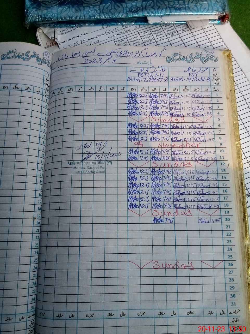 | Name: AZ**** FA**** Designation: (School Headmaster's/Headmistress's) PST Phone/Cell Number: 03**** |