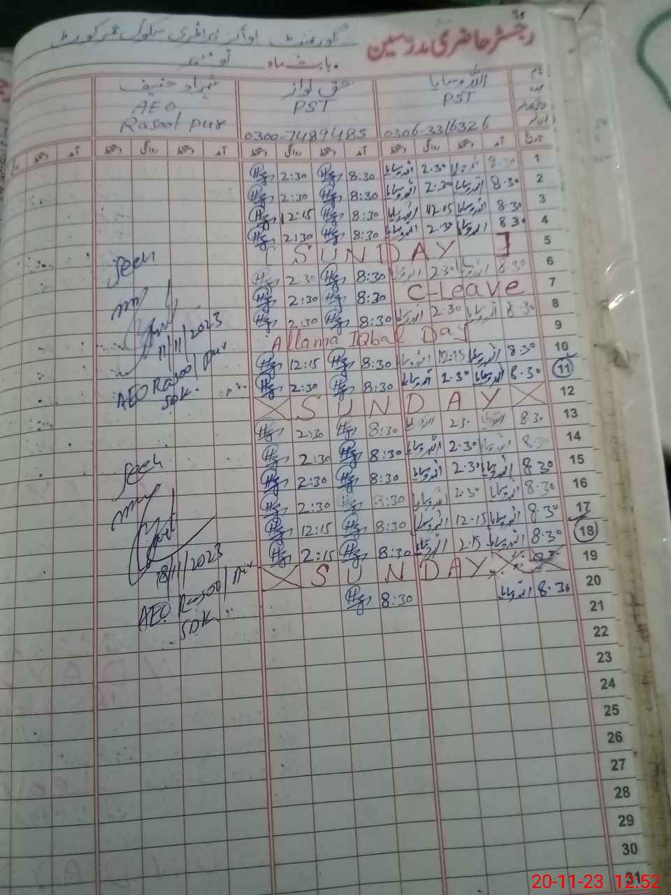 | Name: HA**** Na**** Designation: (School Headmaster's/Headmistress's) PST Phone/Cell Number: 03**** |