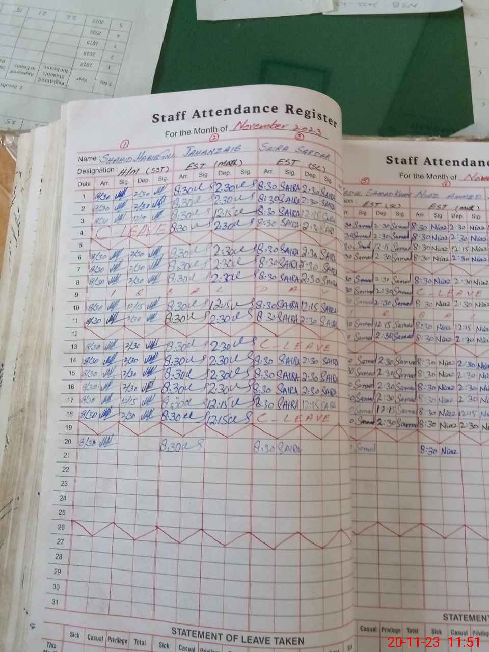 | Name: Sh**** Ha**** Gi**** Designation: (School Headmaster's/Headmistress's) SSt Phone/Cell Number: 03**** |