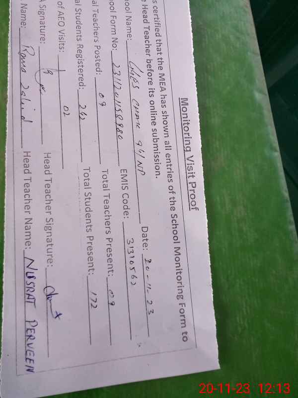 | Attendance Register | Head Teacher | MEA with School | Visit Proof |