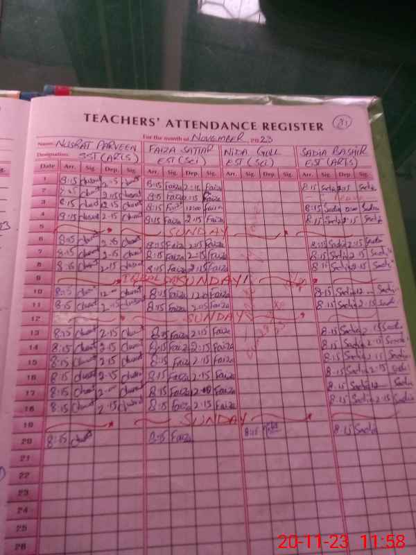 | Name: Nu**** Pe**** Designation: (School Headmaster's/Headmistress's) SST (Arts) Phone/Cell Number: 03**** |