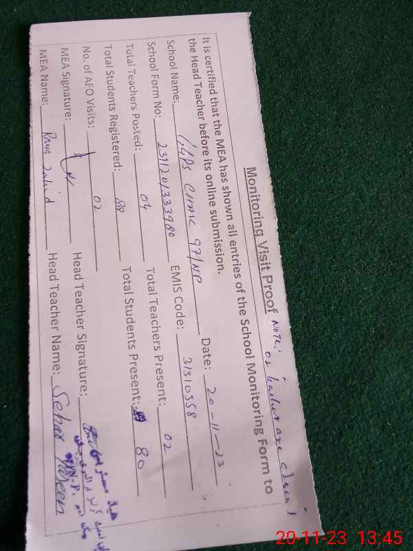 | Attendance Register | Head Teacher | MEA with School | Visit Proof |