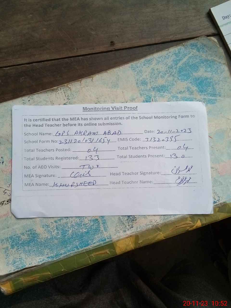 | EMIS Code: 31320395 | Name of School: GPS AKRAM ABAD | |||