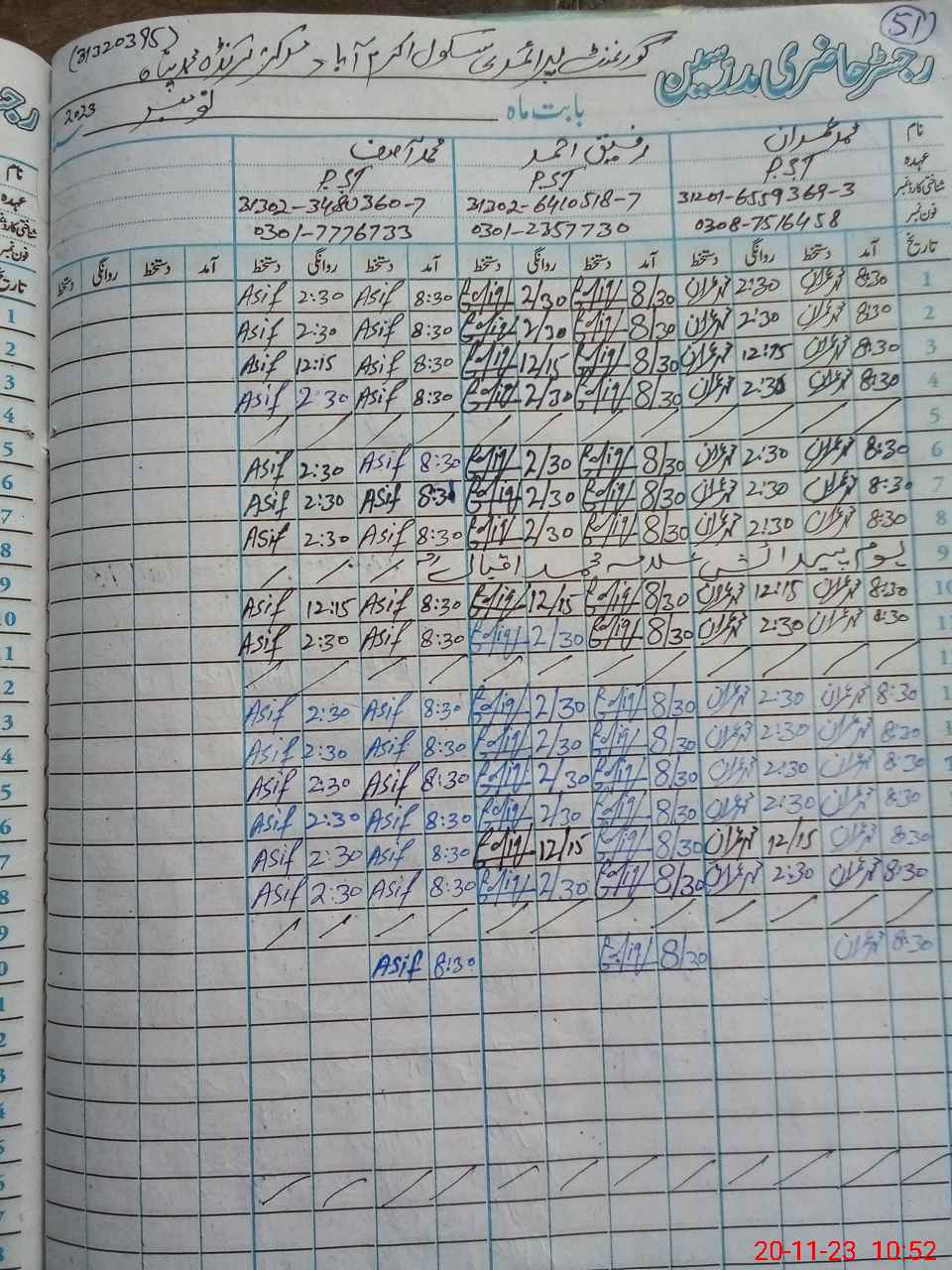 | Name: MU**** IM**** Designation: (School Headmaster's/Headmistress's) PST Phone/Cell Number: 03**** |