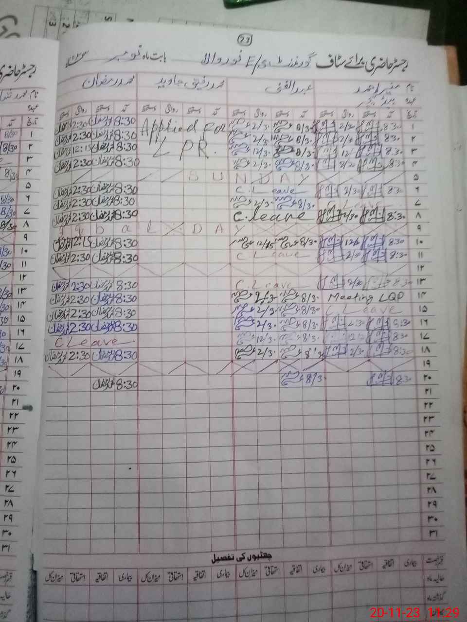 | CNIC | Full Name | Designation | R/C | Absence During Last Calender Month |