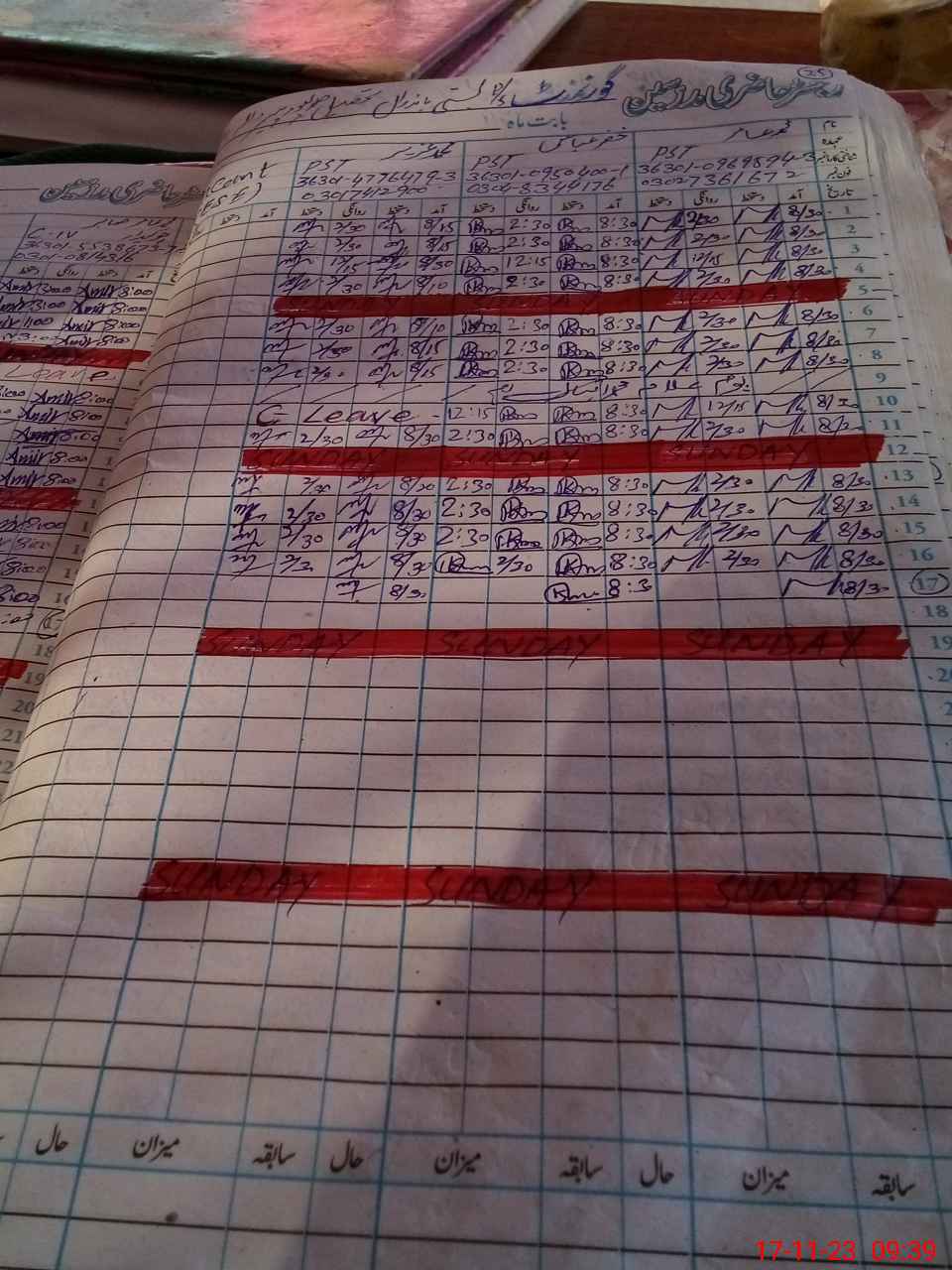 | CNIC | Full Name | Designation | R/C | Absence During Last Calender Month |