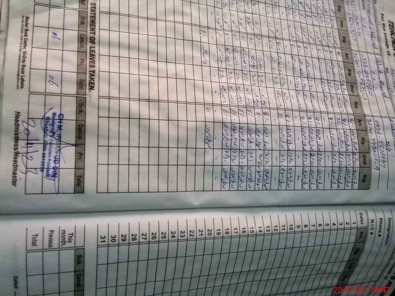 | Name: Ze**** Ha**** Designation: (School Headmaster's/Headmistress's) Sse Phone/Cell Number: 03**** |